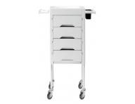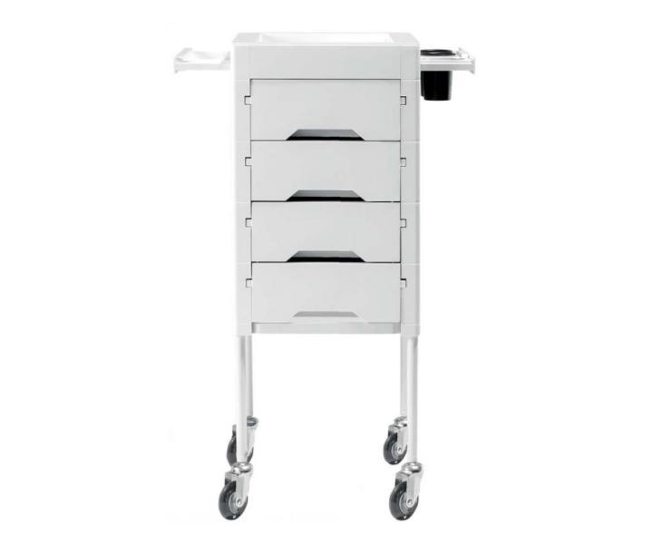 Pomocnik fryzjerski Sibel Secret w kolorze kremowym to praktyczny i niezastąpiony element wyposażenia salonu fryzjerskiego. Posiada 4 funkcjonalne szuflady. Ponadto pod blatem znajduje się wysuwana taca na narzędzia. Pomocnik zapewni Ci komfort i wygodę podczas pracy. Dzięki kółkom można go przemieszczać w dowolne miejsce.