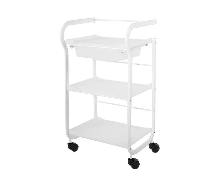 Praktyczny pomocnik na kółkach o bardzo prostej konstrukcji. Pomocnik jest wyposażony w jedną wysuwaną szufladę i trzy półki. Kółka i uchwyt ułatwiają przemieszczanie pomocnika. Vlastnosti: - 3 police - 1 výsuvná zásuvka - jednoduchý design - pro kosmetické a beauty salony - pojizdná kolečka - rukojeť pro snadnou manipulaci Kolor: biały Materiał:... więcej »