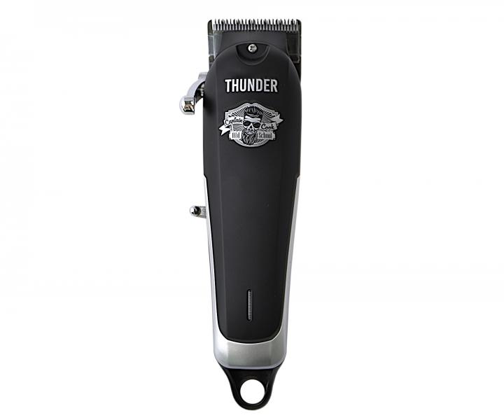 Profesjonalna maszynka do strzyżenia Captain Cook Thunder posiada cichy silnik o niskim poziomie wibracji i prędkości 6500 obr/min, dzięki czemu nadaje się do strzyżenia włosów i brody. Maszynka jest wyposażona w dwie głowice tnące z japońskiej stali o szerokości 45 mm, standardową głowicę do klasycznych cięć i płaską głowicę do bardzo niskich cięć. Dzięki dźwigni blokującej z boku maszynki możliwa jest płynna zmiana wysokości strzyżenia. Wysokość cięcia można również zmieniać za pomocą plastikowych nasadek z metalowym klipsem w rozmiarach 1,5 mm, 3 mm, 4,5 mm, 6 mm, 9 mm i 12 mm, które znajdują się w zestawie. Dzięki ergonomicznie ukształtowanemu uchwytowi urządzenie doskonale leży w dłoni. Łatwa obsługa jest możliwa dzięki bezprzewodowemu działaniu i niskiej wadze maszyny. Czas pracy urządzenia wynosi 300-420 minut, a czas ładowania 180 minut. Dioda LED na obudowie urządzenia informuje o stanie naładowania baterii. Opakowanie zawiera praktyczną podstawkę do ładowania, adapter do ładowania, olej, szczoteczkę do czyszczenia, nasadkę na głowicę i zamszową torebkę.