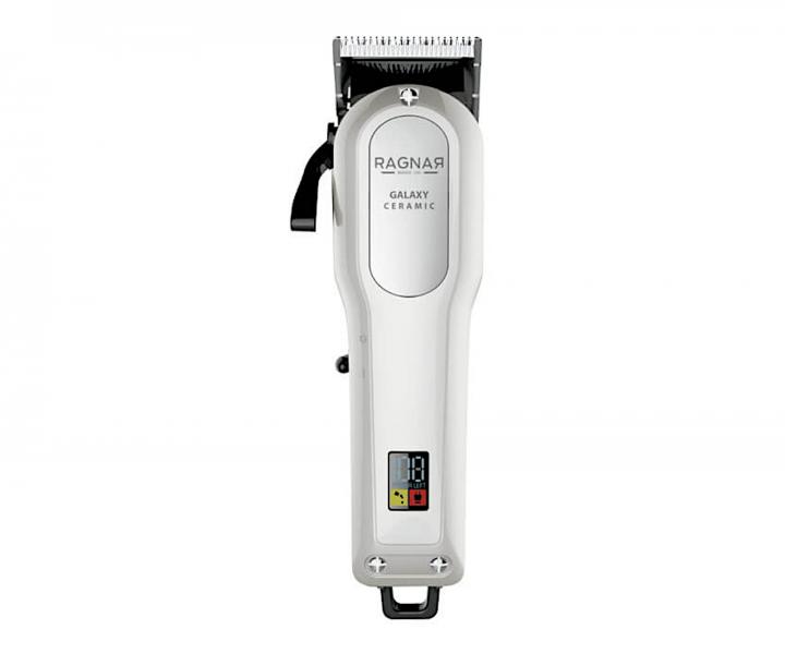 Profesjonalna maszynka do strzyżenia Ragnar Galaxy Ceramic to doskonałe narzędzie do strzyżenia włosów i brody. Oferuje wysoką wydajność, długą żywotność i bardzo cichą pracę silnika z minimalnymi wibracjami. Jej wyjątkowa głowica tnąca ma szerokość 46 mm, stałe tytanowe ostrze i ruchome ostrze ceramiczne. Wysokość cięcia można regulować za pomocą dźwigni z blokadą znajdującą się z boku maszynki lub za pomocą nasadek o wysokości 1,5 mm, 3 mm, 4,5 mm, 6 mm, 10 mm i 13 mm, które są dołączone do zestawu. Maszynka jest zasilana akumulatorowo, czas ładowania wynosi 3 godziny, a czas pracy po pełnym naładowaniu wynosi 4 godziny. Praktyczny wyświetlacz LCD wskazuje poziom naładowania baterii oraz posiada kontrolkę konieczności ładowania i smarowania. Konserwację maszynki ułatwia dołączona szczoteczka i olej do smarowania.