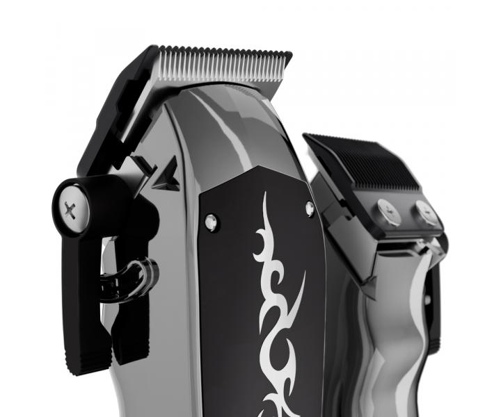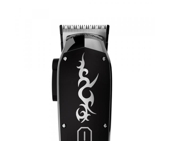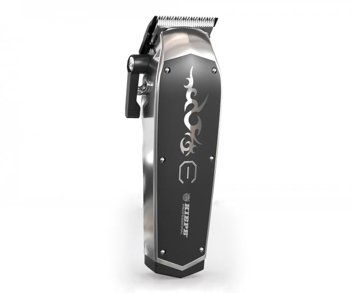 Profesjonalna i designerska maszynka do strzyżenia Kiepe Tattoo Clipper posiada cichy silnik DC o mocy 6500 obr/min, który poradzi sobie zarówno z przycinaniem włosów, jak i brody. Całkowicie metalowa głowica o szerokości 45 mm ma regulowaną długość cięcia od 0,5 do 3,5 mm. Wybraną długość cięcia można łatwo ustawić za pomocą dźwigni blokującej z boku urządzenia, nawet podczas pracy. Dalszą opcję ustawienia długości cięcia stanowią plastikowe nasadki w rozmiarach 1,5 mm, 3 mm, 4,5 mm, 6 mm, 10 mm, 13 mm, 16 mm, 19 mm, 22 mm i 25 mm. Maszynka ma spłaszczony kształt korpusu, dzięki czemu świetnie leży w dłoni i jest łatwa w obsłudze. Dioda LED na obudowie urządzenia informuje o stanie baterii. Czas pracy urządzenia, tak samo jak czas ładowania, wynosi 180 minut. Jeśli urządzenie rozładuje się podczas pracy, można je ponownie uruchomić, podłączając do sieci elektrycznej. W zestawie znajduje się osłona głowicy, śrubokręt, szczoteczka do czyszczenia, olejek i adapter do ładowania.