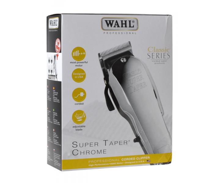Profesjonalna maszynka do strzyżenia włosów Wahl Chrom Super Taper 4005-0472 posiada niezawodny silnik wibracyjny i wysokiej jakości chromowaną metalową głowicę tnącą o szerokości 40 mm i regulacji wysokości cięcia od 1 mm do 2 mm. W zestawie wymienne nasadki 3 mm, 6 mm, 10 mm, 13 mm, szczoteczka do czyszczenia, olejek, grzebień fryzjerski i osłonka ochronna głowicy tnącej.