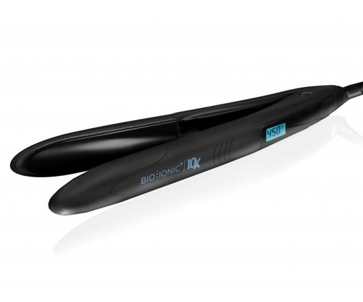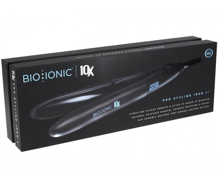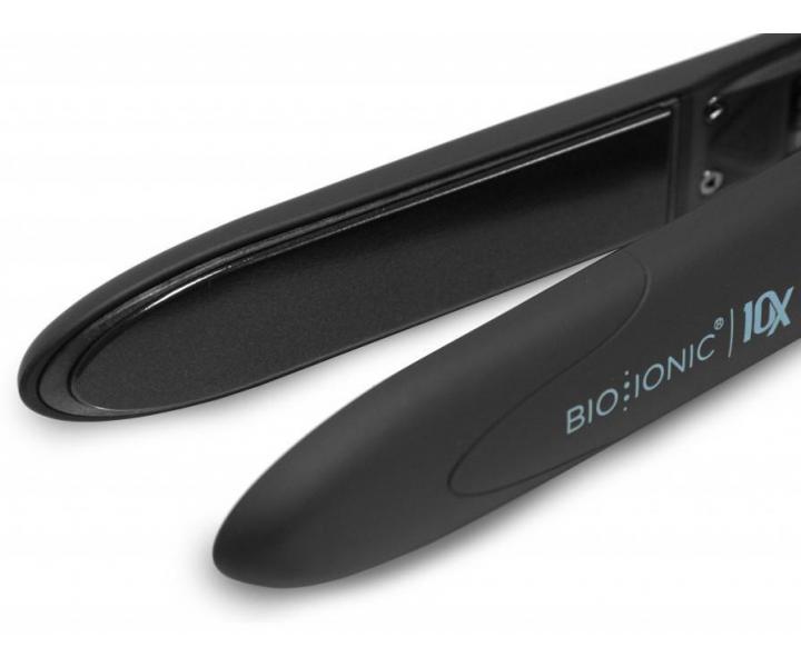 Profesjonalna prostownica do włosów Bio Ionic 10X Pro Styling Iron 1 z wibrującymi powierzchniami prostującymi, które nadają włosom miękkość i połysk. Pulsujące mikrowibracje równomiernie prostują włosy, dzięki czemu stylizacja przebiega szybciej. Elementy grzejne BioKeramic zapewniają równomierną i stałą temperaturę. Zaokrąglona końcówka prostownicy umożliwia różnorodną stylizację od nasady włosów. Ergonomiczny uchwyt został wykonany z przyjemnego w dotyku materiału. Cyfrowy wyświetlacz z możliwością ustawienia temperatury w zakresie od 130°C do 230°C. Prostownica po 1 godzinie bezczynności wyłącza się automatycznie. W zestawie znajduje się rękawica termoochronna.