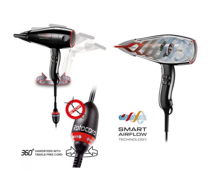Rotocord - rewolucyjna, opatentowana innowacja, która umożliwia obrót przewodu o 360°, co zapobiega plątaniu się kabla, jego uszkodzeniu i sprawia, że suszarka jest łatwiejsza w obsłudze. Rotocord to światowa innowacja, która została opracowana i wyprodukowana pod marką Valera