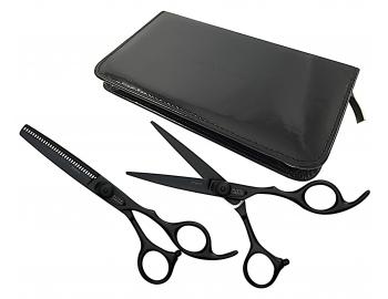 Zestaw nożyczek fryzjerskich 5,75" i degażówek 6,35" Olivia Garden SilkCut Pro Matt Black