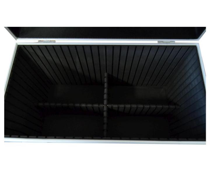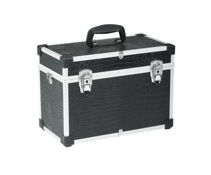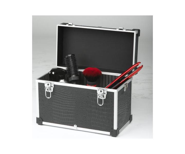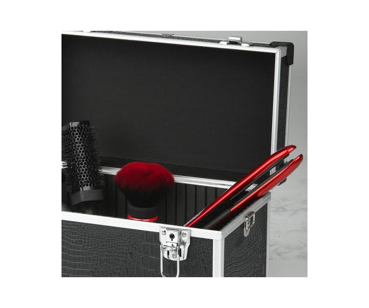 Profesjonalne kufer fryzjerski lub kosmetyczny Sibel zamykany na klucz. Wnętrze kufra jest podzielone na cztery części, które można wyjąć. Całe wnętrze walizki wyposażone jest w miękką wyściółkę. Powierzchnia kufra pokryta jest imitacją krokodylej skóry, rama jest aluminiowa, a na narożnikach znajdują się plastikowe osłonki. Walizka posiada pasek na ramię.