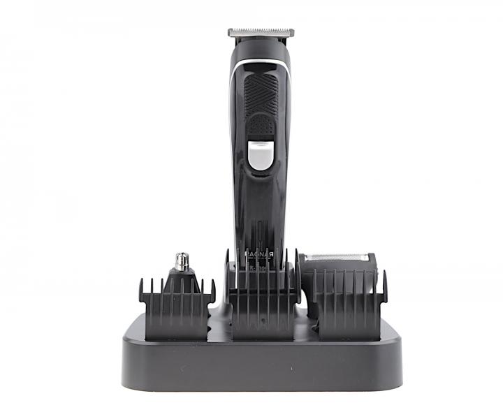 Profesjonalny trymer z akcesoriami Ragnar Barber Line K-3300 to bardzo praktyczne narzędzie do pielęgnacji włosów i brody. Wysokiej jakości urządzenie łączy w sobie dużą wydajność z ergonomiczną konstrukcją, pozwalając osiągnąć doskonałe rezultaty przy każdym użyciu. W zestawie oprócz głowicy do przycinania w kształcie T o szerokości 38 mm, znajduje się również głowica do konturowania o szerokości 30 mm i głowica o szerokości 8 mm do bardzo precyzyjnych prac wykończeniowych. Ze względu na szerokość głowic i drobne ząbki trymer jest idealny do konturowania oraz przycinania detali podczas finalizacji strzyżenia. Długość cięcia można regulować za pomocą nasadek 3, 6, 9 i 12 mm. Głowica foliowa umożliwia gładkie golenie, zaś włoski w nosie można łatwo przyciąć za pomocą głowicy specjalnej, która również znajduje się w zestawie. Ostre ostrza głowic pozwalają na gładkie i precyzyjne cięcie bez szarpania włosów. Wąski korpus trymera idealnie leży w dłoni, dzięki czemu praca z urządzeniem jest łatwa i wygodna. Czas pracy trymera wynosi do 90 minut, zaś czas ładowania to 120 minut. W zestawie znajduje się praktyczny stojak do przechowywania nie tylko maszynki, ale także wszystkich zapasowych głowic i akcesoriów.