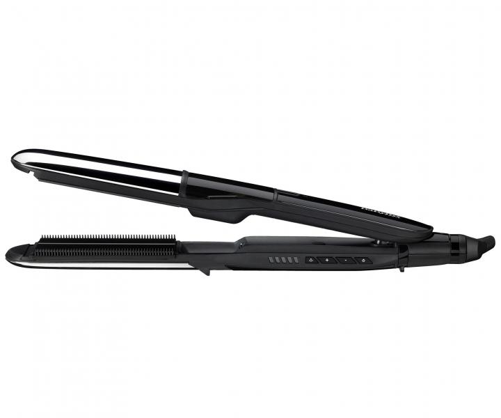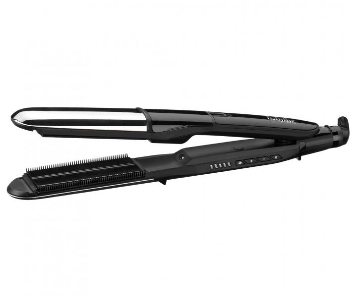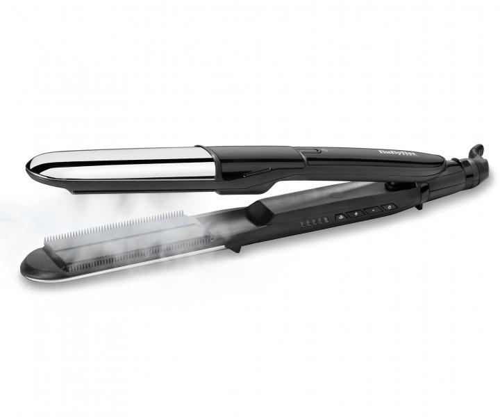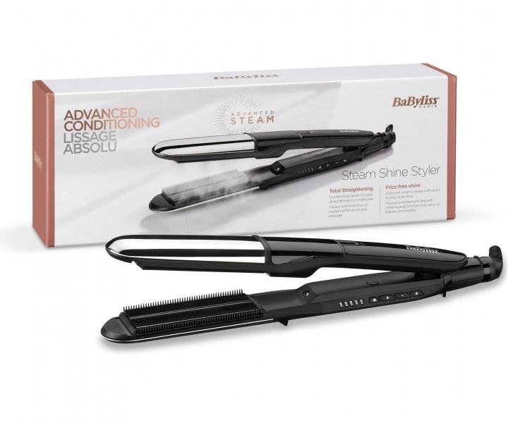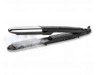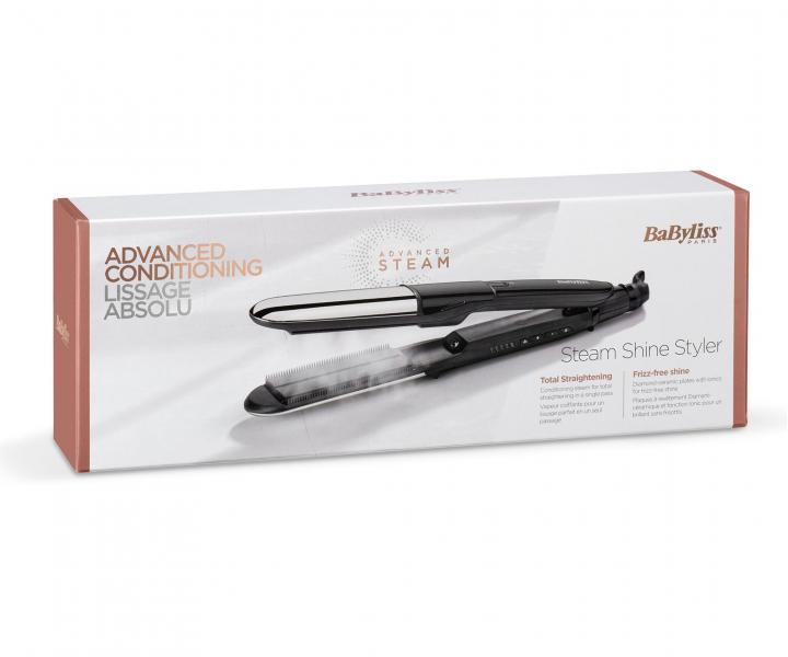 Prostownica parowa do włosów BaByliss Steam Shine Styler z diamentowo-ceramiczną powierzchnią do prostowania. Pięć ustawień temperatury od 150 do 230°C, szybkie nagrzewanie w 20 sekund. Unikalny system parowy chroni włosy przed szokiem termicznym, nawilża je i przygotowuje do dalszej pielęgnacji. Prostownica posiada wskaźnik LED informujący o włączeniu, wskaźnik LED informujący o temperaturze oraz pojemnik na wodę o pojemności 12 ml. Elektryczny generator pary zapewnia ciągły strumień pary dla optymalnych rezultatów. Grzebienie można zdemontować.