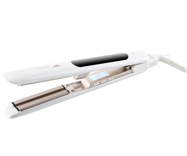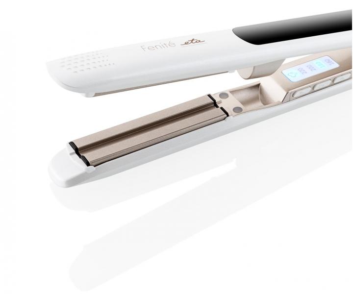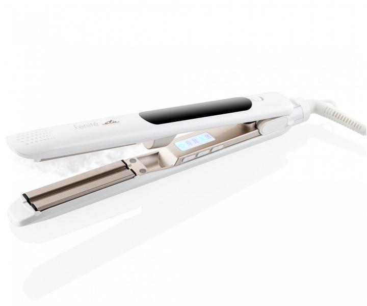 Prostownica parowa ETA Fenité 3337 posiada pływające płytki ceramiczno-turmalinowe, które są bardzo przyjazne dla włosów. Zakres temperatur od 160 °C do 220 °C umożliwia prostowanie wszystkich rodzajów włosów. O aktualnie wybranej temperaturze informuje sygnał świetlny. Prostownica posiada funkcję prostowania parowego, pojemność zbiornika na wodę destylowaną wynosi 7,5 ml, taka ilość zapewni do 20 minut działania pary. Dzięki parze można stylizować włosy szybciej i wydajniej. Zbiornik można łatwo zdemontować. Funkcję pary można łatwo wyłączyć za pomocą przycisku bezpośrednio na urządzeniu. Obrotowy przewód zapewnia wygodną obsługę. Jeśli prostownica nie jest używana przez 30 minut, automatycznie się wyłącza. Posiada opcję zablokowania płytek prostujących w pozycji zamkniętej i praktyczną pętlę do zawieszania. W zestawie znajduje się etui podróżne..