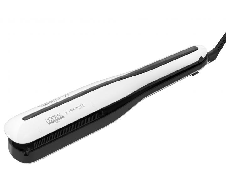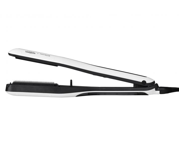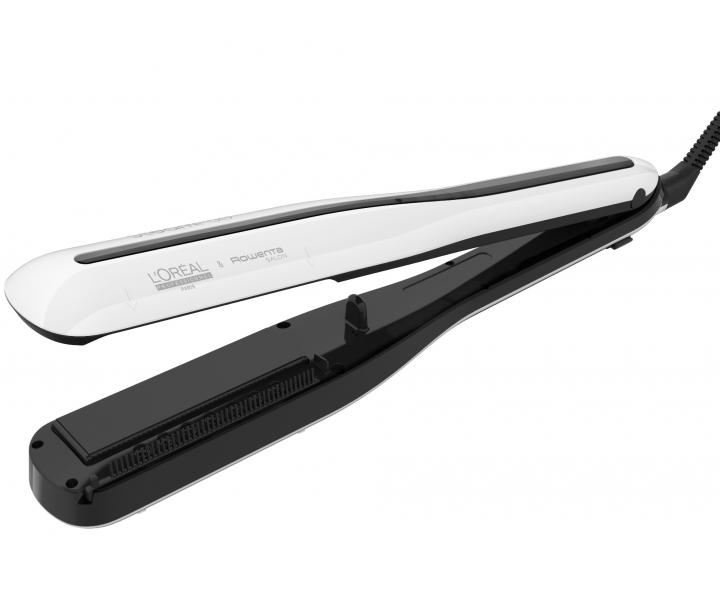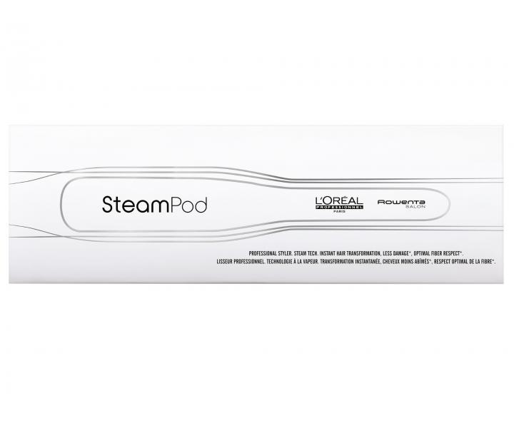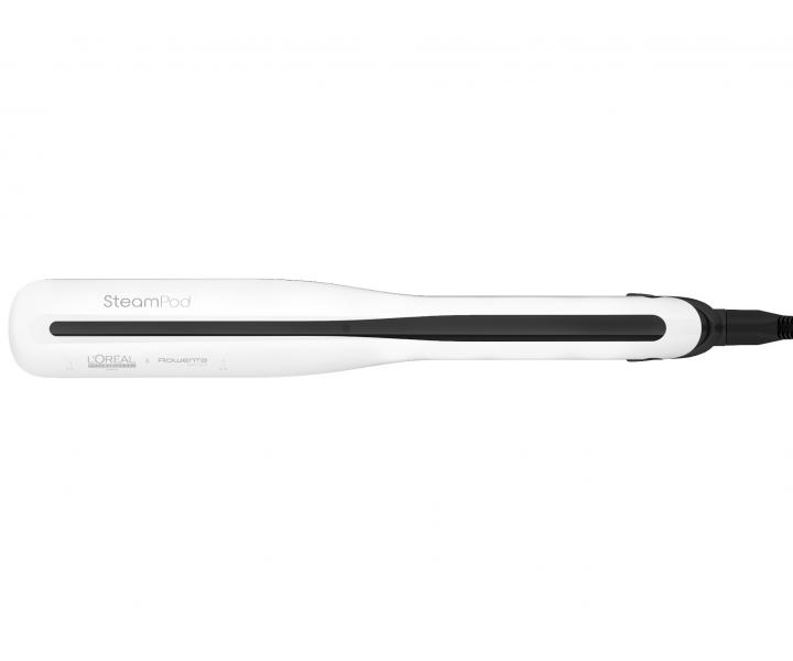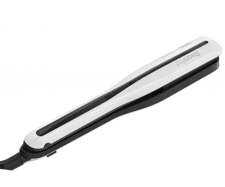 Prostownica parowa Loréal Professionnel SteamPod 3.0 łączy w sobie wysokie ciśnienie pary i technologię Pro-Keratin, dzięki czemu włosy są gładkie i lśniące. Prasowanie włosów jest 2x szybsze i sprawia, że włosy są 2x gładsze w porównaniu z użyciem SteamPod 3.0 bez pary i grzebienia. Prostownica ma zintegrowany zbiornik na wodę i pozwala wyprasować do 192 metrów włosów na jednym napełnieniu. Automatyczna regulacja temperatury w zależności od potrzeb włosów, inteligentna kontrola temperatury 2x na sekundę. Anodyzowana powłoka płytek charakteryzuje się wysoką odpornością dla lepszego przesuwania się po włosach, górna płytka jest ruchoma co zapewnia idealny kontakt z włosami.