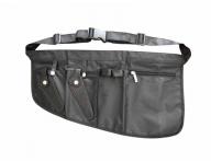 Bardzo lekki przybornik, kabura tekstylna Duko na nożyczki fryzjerskie i inne akcesoria (szczotki, grzebienie, klipsy). Długość paska wokół talii można dowolnie regulować. Przybornik nadaje się do prania, posiada 2 przegródki na nożyczki oraz dodatkowe schowki na grzebienie, spinki i inne akcesoria, w tym jedną kieszeń zapinaną na zamek. Kolor: cz... więcej »