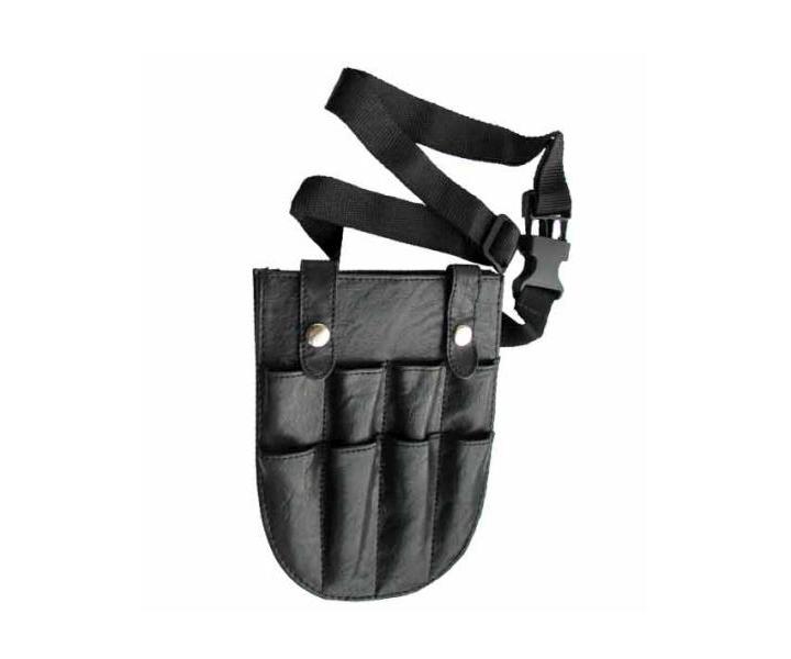 Lekki przybornik na nożyczki fryzjerskie, kabura Duko jest wykonane ze skóry. Długość paska można dowolnie regulować. Kieszeń ma jedną dużą przegrodę i 8 małych na grzebienie, spinki i inne narzędzia. Kolor: czarny Materiał: skóra Wymiary: 14 cm x 18,8 cm