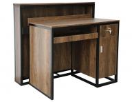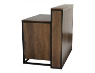 Recepcja fryzjerska Hairway Iron to elegancki i praktyczny mebel idealny do każdego salonu fryzjerskiego, kosmetycznego i urody. Wykonana została z brązowej okleiny z imitacją drewna orzechowego i zapewnia mnóstwo miejsca do przechowywania wszystkich materiałów biurowych i salonowych. Przestronne biurko uzupełnia zamykana szuflada i wysuwana półka, co gwarantuje wygodne i bezpieczne przechowywanie. Metalowa konstrukcja zapewnia recepcji wytrzymałość i stabilność, a także ciekawy design.