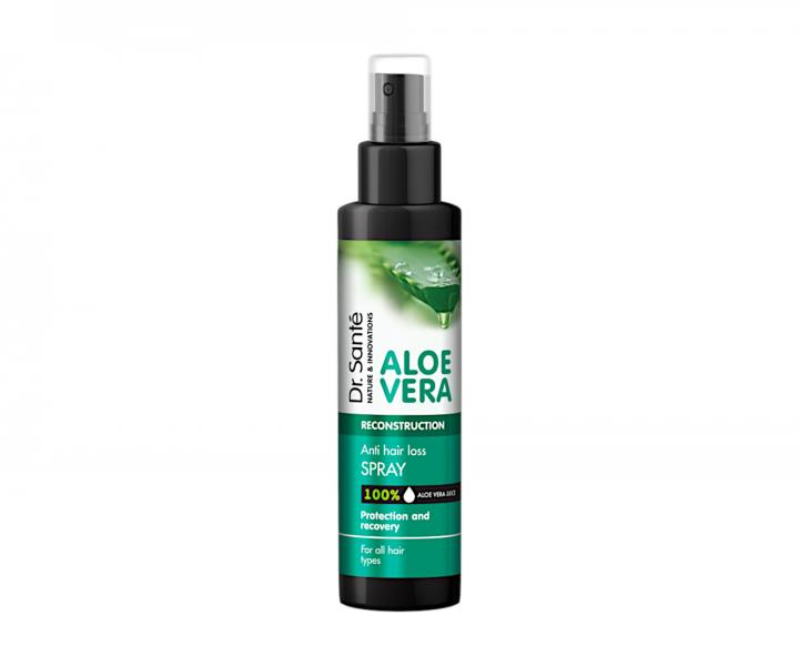 Spray przeciw wypadaniu włosów Dr. Santé Aloe Vera jest przeznaczony do wszystkich rodzajów włosów. Chroni włosy przed uszkodzeniami, wzmacnia ich strukturę i nawilża. Spray odbudowuje włókna włosów i wspomaga porost nowych włosów. Spray zawiera wyciągi z aloesu.