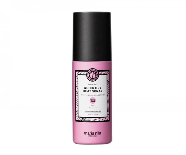 Spray do włosów Maria Nila Quick Dry Heat Spray ma lekką, nieobciążającą formułę, która chroni włosy przed szkodliwym działaniem temperatury podczas suszenia lub innej metody stylizacji termicznej, takiej jak prostowanie, fale itp. Dzięki zawartości substancji hydrofobowych spray przyspiesza suszenie włosów. Kompleks Color Guard chroni włosy przed promieniami UV i zapewnia długotrwały, żywy kolor. Pozostawia delikatny kwiatowy zapach łączący nuty żółtej róży, białego piżma i słodkiej gruszki. Spray ma wegańską formułę, pozostawiając włosy promiennie lśniące i delikatnie utrwalone.