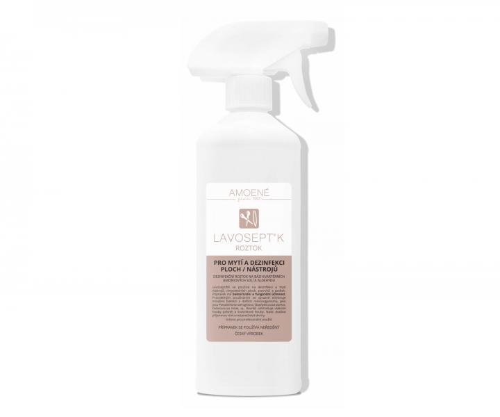 Roztwór do dezynfekcji Amoené Lavosept na bazie czwartorzędowych soli amoniowych i aldehydów w postaci rozcieńczonego koncentratu jest przeznaczony do dezynfekcji powierzchni i narzędzi. Środek ten zapewnia higieniczną czystość stołów roboczych, foteli, umywalek i narzędzi. Nadaje się do stosowania w zakładach fryzjerskich, manicure i pedicure, centrach odnowy biologicznej, firmach sprzątających, klinikach medycznych i gospodarstwach domowych. Po użyciu pozostawia delikatny zapach cytryny.