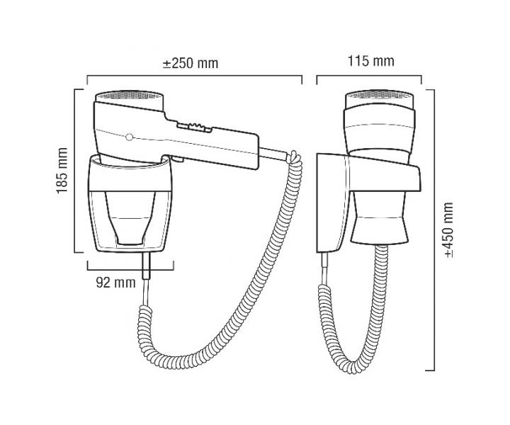 Suszarka do włosów Valera Executive Super, z mocowaniem ściennym, przeznaczona do hoteli, spa, wellness i innych ośrodków rekreacyjnych. Suszarka do włosów posiada wyłącznik bezpieczeństwa na uchwycie ściennym. 2 poziomy temperatury i prędkości powietrza, zimne powietrze do utrwalania fryzury.