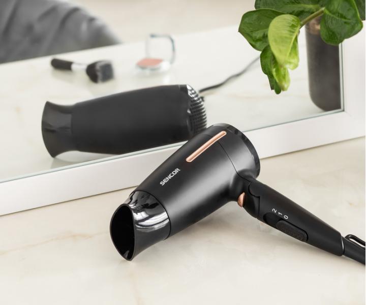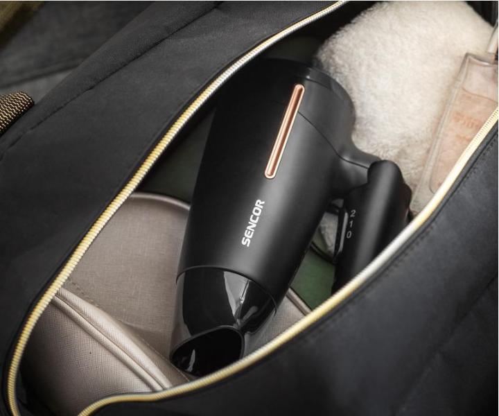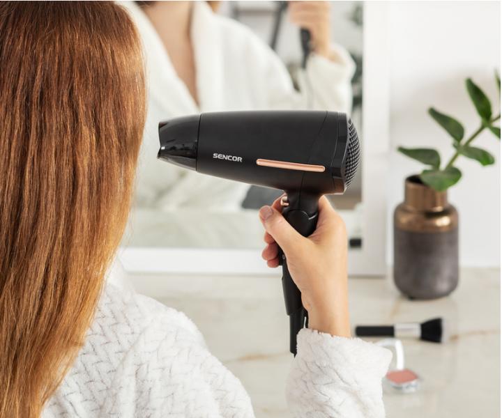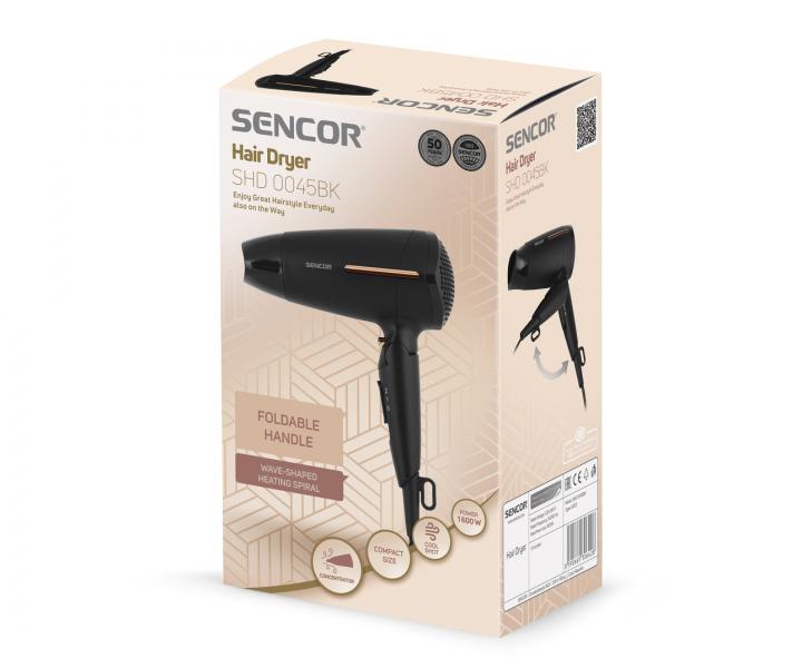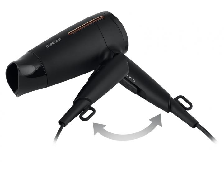 Suszarka do włosów Sencor SHD 0045BK ze składanym uchwytem pozwala na wygodne przechowywanie sprzętu w każdej podróży, a dodatkowo jest bardzo lekka. Ergonomiczny uchwyt zapewnia wygodne użytkowanie. Spirala grzejna w kształcie fali gwarantuje utrzymanie tej samej temperatury podczas całego procesu suszenia, zapobiegając w ten sposób uszkodzeniu włosów. Zdejmowana tylna kratka ułatwia czyszczenie, a przycisk zimnego powietrza pozwala utrwalić fryzurę. Suszarka do włosów ma 2 ustawienia temperatury i 2 ustawienia prędkości, aby zagwarantować idealny przepływ powietrza. Po zakończeniu suszenia można powiesić suszarkę na poręcznym haczyku. W zestawie znajduje się również stożkowa dysza o szerokości 75 mm.