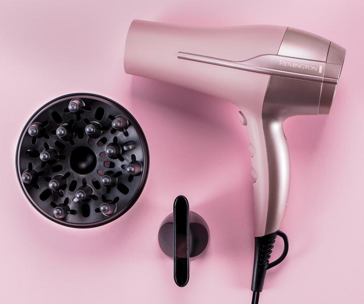 Suszarka do włosów Remington Coconut Smooth o mocy 2200 W zapewni profesjonalne rezultaty w zaciszu własnego domu. Suszarka posiada funkcję jonizacji, która gwarantuje połysk bez efektu puszenia włosów. Dzięki trzystopniowej regulacji temperatury urządzenie niezwykle szybko suszy włosy. Dodatkowo przycisk zimnego powietrza umożliwia utrwalenie fryzury. Suszarka posiada wyjmowany filtr, dzięki czemu jej konserwacja jest bezproblemowa. Po zakończeniu suszenia można powiesić suszarkę na poręcznej pętli. W zestawie znajduje się dysza powietrzna i dyfuzor.