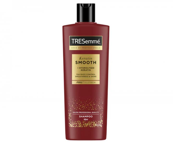 Szampon Tresemmé Keratin Smooth zawiera unikalną formułę, która zapobiega puszeniu się włosów nawet do 72 godzin. Keratyna i afrykański olejek marula wygładzają włókna włosów, nadając im aksamitną miękkość, połysk i blask. Pomagają również w łatwym rozczesywaniu włosów i zapobiegają ich puszeniu się. Dzięki temu włosy są idealnie miękkie i pięknie się układają.