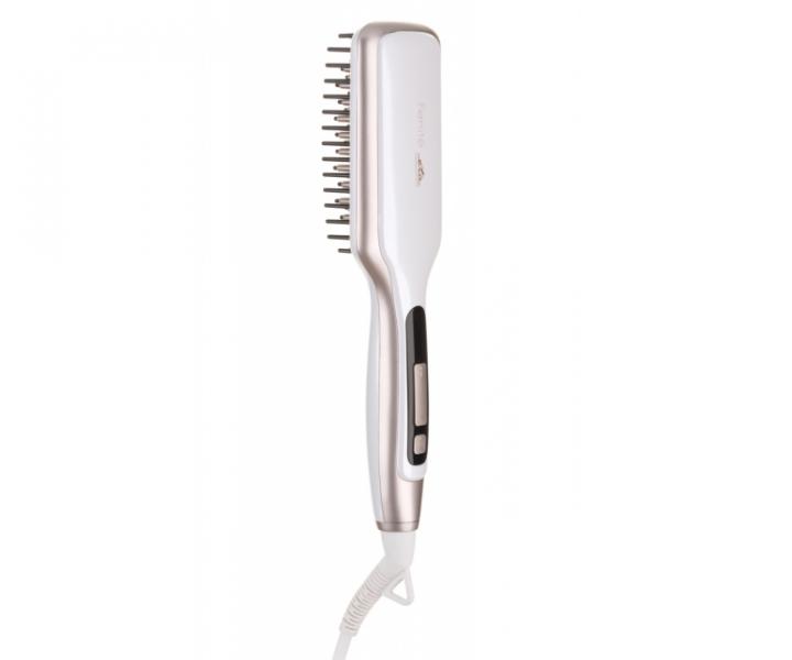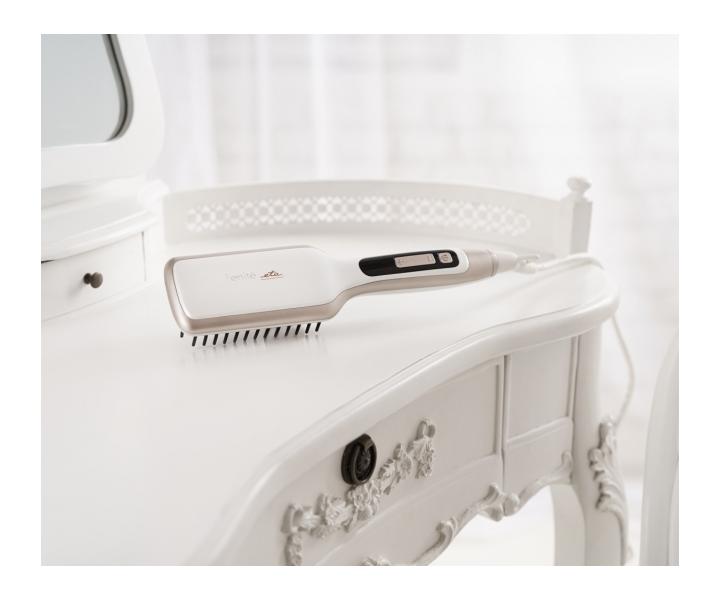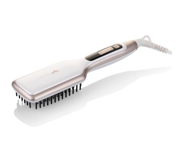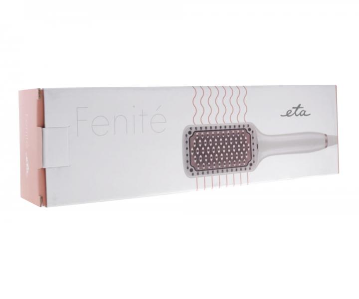 Podgrzewana szczotka do prostowania włosów ETA Fenité jest doskonała do uzyskania naturalnie wyglądających prostych włosów. Technologia jonizacji nadaje włosom połysk i miękkość, a ceramiczna powierzchnia chroni włosy przed puszeniem. Regulowana temperatura od 160 °C do 220 °C, automatyczne wyłączanie po 60 minutach bezczynności. Elegancki design, ergonomiczny kształt i obrotowy przewód ułatwiają obsługę podczas prostowania. Prostowanie włosów za pomocą szczotki jest bardzo wygodne i bezpieczne - brzegi szczotki zabezpieczone są plastikowymi, zimnymi końcówkami. W zestawie znajduje się praktyczne etui podróżne.