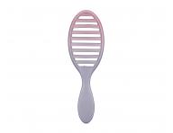 Płaska szczotka Wet Brush Speed Dry zapewnia nie tylko łatwe rozczesywanie, ale także szybkie i delikatne suszenie. Dzięki obszernym otworom w korpusie szczotki nadmuch z suszarki może z łatwością przepływać przez szczotkę, co zapewnia szybsze i delikatniejsze suszenie włosów. Specjalne włosie z technologią HeatFlex jest odporne na wysoką temperaturę i dopasowuje się do kształtu głowy, zapobiegając podrażnieniom skóry. Delikatnie rozczesuje włosy i eliminuje ich puszenie oraz łamanie. Włosie zakończone jest małymi kuleczkami, które chronią skórę głowy przed podrażnieniami, jednocześnie delikatnie ją masując. Szczotki są odpowiednie do rozczesywania wszystkich rodzajów włosów na mokro. Posiada elegancki design w limitowanym fioletowo-różowym kolorze.