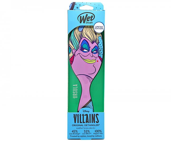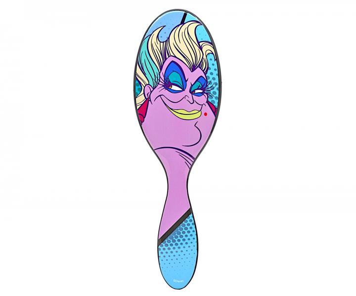 Szczotka Wet Brush Original Detangler zapewnia łatwe i delikatne rozczesywanie bez bolesnego ciągnięcia. Pneumatyczna podkładka została wyposażona w ekskluzywne włosie Intelliflex rozmieszczone w kilku rzędach. Dzięki temu szczotka delikatnie przesuwa się po poszczególnych pasmach włosów, ułatwiając rozczesywanie nawet o 55%. Jednocześnie zmniejsza to ryzyko rozdwajania się końcówek i łamania włosów podczas czesania nawet o 45%. Włosie zakończone jest małymi kuleczkami, które chronią skórę głowy przed podrażnieniami, jednocześnie delikatnie ją masując. Szczotka jest odpowiednia do rozczesywania wszystkich rodzajów włosów zarówno na mokro jak i na sucho. Ma zabawny design oparty na negatywnych bohaterach Disneya przedstawiający postać morskiej wiedźmy Urszuli.