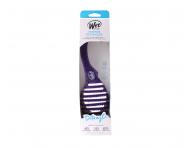 Szczotka Wet Brush Shower Detangler zapewnia łatwe i delikatne rozczesywanie włosów bez bolesnego ciągnięcia. Ponadto jest idealna do rozprowadzania produktów do pielęgnacji włosów. Dzięki specjalnej konstrukcji Omniflex szczotka podczas czesania dopasowuje się do kształtu głowy, co zapobiega podrażnieniom skóry. Ekskluzywne włosie IntelliFlex umieszczone w kilku rzędach na korpusie szczotki, delikatnie przesuwa się po poszczególnych pasmach włosów, ułatwiając ich rozczesywanie aż o 55%. Jednocześnie zmniejszają ryzyko rozdwajania się końcówek i łamania włosów podczas czesania nawet o 45%. Włosie zakończone jest małymi kuleczkami, które chronią skórę głowy przed podrażnieniami i jednocześnie ją masują. Szczotka nadaje się do rozczesywania mokrych włosów każdego rodzaju. Ma elegancki design z uchwytem zakończonym haczykiem ułatwiającym zawieszenie szczotki pod prysznicem. Szczotka nie nadaje się do stosowania podczas suszenia włosów suszarką.