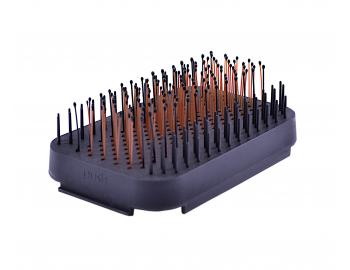 Szczotka Varis Detangler Brush Grid to doskonała pomoc w walce ze splątanymi i niesfornymi włosami. Matowe wykończenie i szeroki uchwyt zapewniają przyjemną i lekką manipulację podczas używania szczotki. Szczotka ma nylonowe włosie i gumową powierzchnię, która eliminuje elektryzowanie się włosów. Szeroka powierzchnia i system Tri-Detangle (system trzech różnych rodzajów nylonowego włosia) sprawiają, że szczotka jest idealna do delikatnego rozczesywania długich i średniej długości włosów bez ich uszkadzania. Poduszkę z włosia można łatwo zdjąć, co ułatwia czyszczenie i zapobiega rozwojowi bakterii.