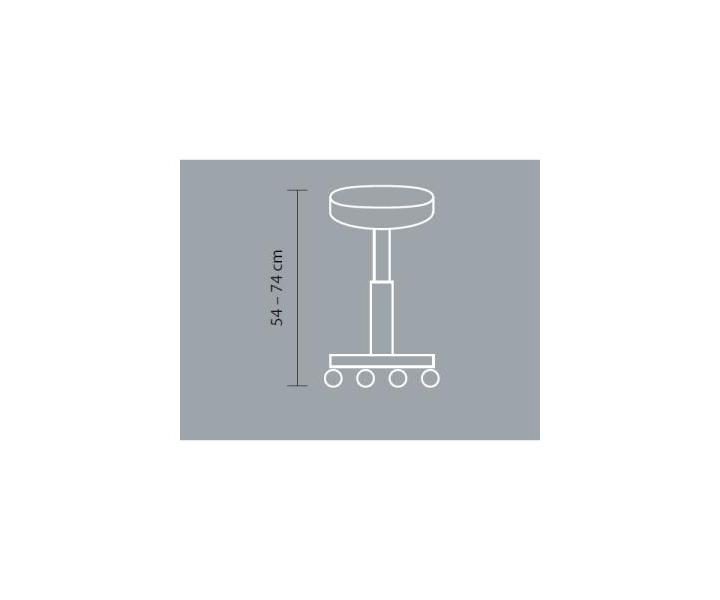 Kosmetyczny i fryzjerski taboret na kółkach Hairway Profi z regulowanym siedziskiem, stabilną chromowaną konstrukcją i tapicerką ze sztucznej skóry zapewniającą komfort podczas pracy. Taboret osadzony jest na pięcioramiennej chromowanej podstawie.