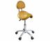 Taboret kosmetyczny i fryzjerski z oparciem Detail T2 w złotym kolorze przyciągnie swoim wyjątkowym designem i doda niepowtarzalnej atmosfery każdemu salonowi, zarówno fryzjerskiemu, jak i kosmetycznemu. Siedzisko taboretu, pokryte wysokiej jakości ekoskórą z imitacją skóry krokodyla, osadzony jest na tłoku gazowym z regulacją wysokości w zakresie od 48 cm do 62 cm. Siedzisko w kształcie siodła zapewnia wygodne siedzenie. Stabilność zapewnia pięcioramienna podstawa w kolorze matowego chromu z plastikowymi kółkami, które ułatwiają przemieszczanie taboretu. Taboret może być również używany w innych branżach takich jak wizażyści, fotografowie itp. Z tyłu oparcia znajduje się nadrukowane logo producenta.