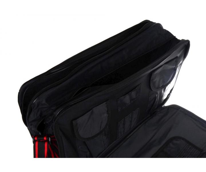 Torba Sibel na narzędzia oraz różne akcesoria fryzjerskie. Torba posiada trzy przegrody, przednia przegroda jest w pełni otwierana i posiada praktyczne kieszenie do przechowywania grzebieni, klipsów i innych narzędzi. Torba ma łatwo zmywalną powierzchnię ułatwiającą czyszczenie.