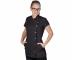 Fartuch fryzjerski Crazy Scissors z haftem według oryginalnego projektu artysty Josefa Rataja. Strój dopasowuje się do każdej sylwetki, ma asymetryczne zapięcie na kwadratowe guziki, boczne kieszenie oraz można go prać w pralce w temperaturze 40°C. Istnieje możliwość prasowania fartucha w niskiej temperaturze.