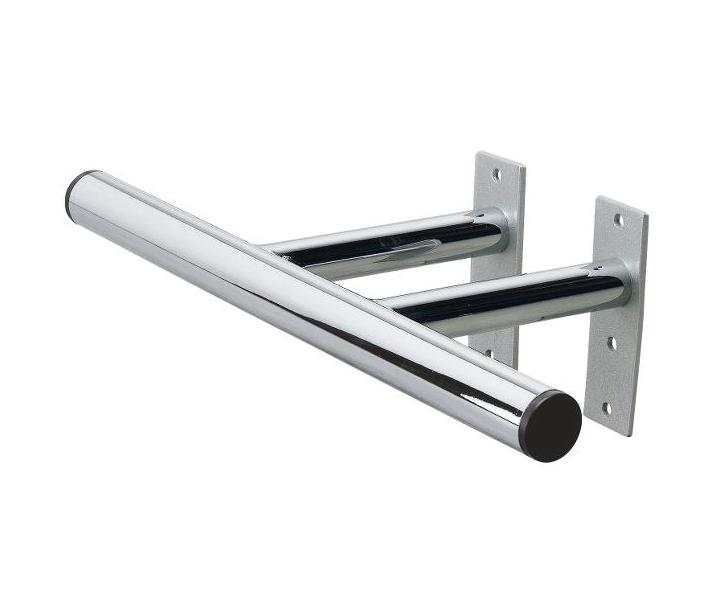 Chromowany podnóżek Sibel z możliwością montażu do ściany lub podłogi. W zestawie znajdują się śruby do montażu. Materiał: chromowana stal Wymiary: 40 x 18 cm