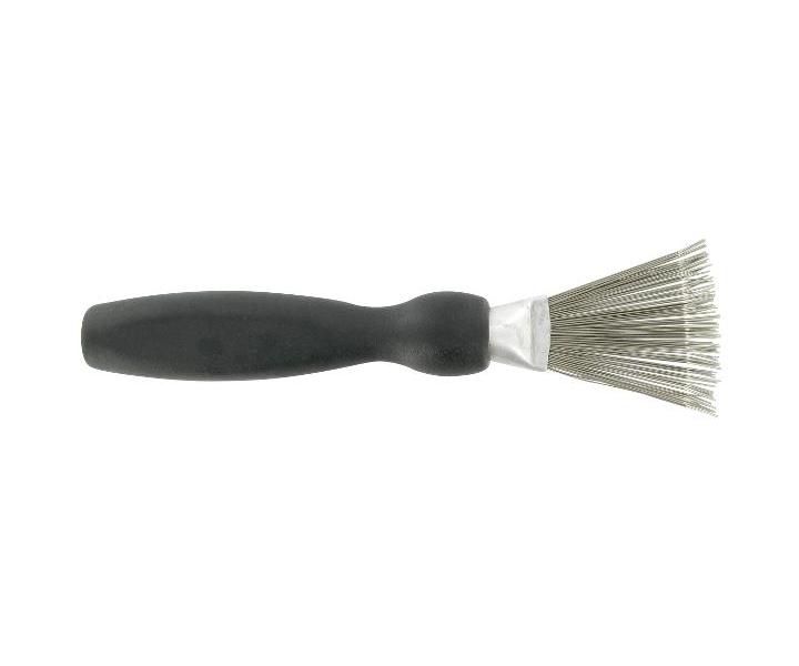 Praktyczne urządzenie do czyszczenia grzebieni i szczotek Sibel ma drewnianą rączkę i delikatnie zakrzywione końcówki ze stali nierdzewnej, które wychwytują włosy, kurz i kłaczki i usuwają je w mgnieniu oka. Szczotka ma długość 12 cm.