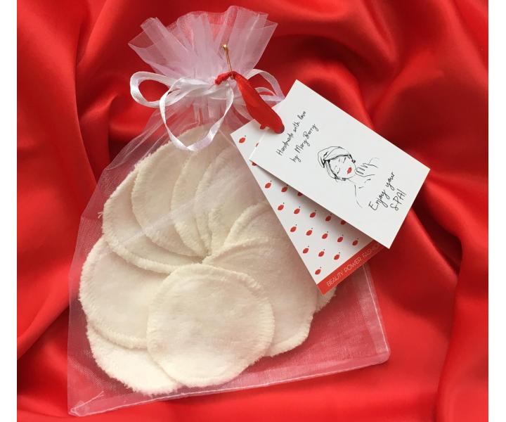 Wielorazowe waciki do demakijażu MaryBerry Soft Touch zapewniają komfortowe i jednocześnie maksymalnie ekologiczne użytkowanie. Wykonane są w 100% z bawełny typu welur (wewnętrzna strona jest frotte, zewnętrzna strona ma gęste i krótkie włosie, dzięki czemu powierzchnia przypomina aksamit), dzięki czemu ich użytkowanie będzie przyjemne. Bardziej miękka strona zadba o dokładny demakijaż, a szorstka o jeszcze dokładniejsze oczyszczenie skóry i usunięcie maseczek do twarzy. Materiał jest chłonny i trwały kolorystycznie. Można je prać ręcznie lub w pralce w temperaturze od 40°C do 60°C bez użycia płynu do płukania tkanin. Waciki do demakijażu są zapakowane w ozdobny woreczek.