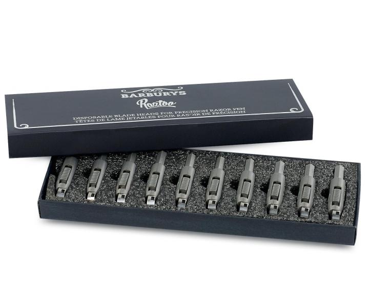 Wymienne ostrza jednorazowe Sibel do brzytwy do wzorków Sibel Barburys Raztoo. Opakowanie zawiera 10 jednorazowych ostrzy wymiennych.