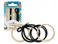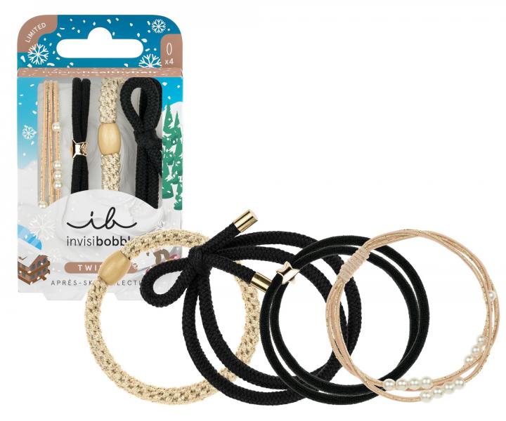 Zestaw Invisibobble Aprés-Ski Fondue Lover sprawi, że Twoja fryzura nabierze wyjątkowego charakteru. Zestaw zawiera cztery różne gumki - czarną z ozdobną pętelką, czarną ze złotą gwiazdką, mieniącą się złotem i różowo-złotą z koralikami. Gumki są elastyczne, świetnie trzymają się na włosach i nadają się do każdego rodzaju włosów. Dzięki swojemu eleganckiemu wyglądowi idealnie nadają się również jako bransoletka na rękę.