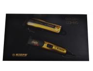 Profesjonalny mini trymer do włosów Kiepe jest idealny do finalizacji strzyżenia i konturowania. Szerokość głowicy wynosi 40 mm, zaś długość cięcia 0,2 mm. Stałe ostrze stałe zostało wykonane ze stali nierdzewnej, zaś ostrze ruchome ze stali chirurgicznej. Trymer jest bardzo łatwy w obsłudze i idealnie nadaje się do wycinania kształtów. W zestawie znajdują się nasadki 1,5 mm, 4,5 mm i 6 mm, osłona głowicy, olejek i szczoteczka do czyszczenia.